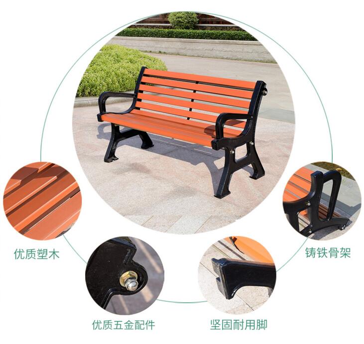 鑄鐵椅腳是公園的座椅常見的椅腳材質,鑄鐵材質,具有耐磨減震的性能,韌性較好,環保經濟實用.表面經過打磨,拋光,防銹處理,不變形,不開裂,不腐爛,適應戶外長期使用.連接件采用不銹鋼螺栓和高強度木螺絲.我們考慮到公園椅是放到室外的產品,風吹日曬,連接件如過采用一般的鍍鋅鍍鉻螺栓,使用期會非常短,釘子生銹后的氧化成分,對椅條會產生損害,從而減少公園椅的使用壽命.所以我們采用了不銹鋼螺栓,具有較高的強度,硬度和耐磨性,耐腐蝕性而且美觀大方。