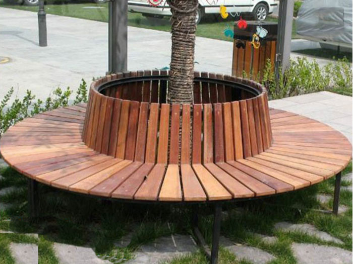 樹陣在廣場植物造景中應用較多,圍樹椅自然也就必不可少。以防腐木“包裹”混凝土外圍,增添了自然氣息,弱化了樹池的生硬,使用起來也更為舒適。