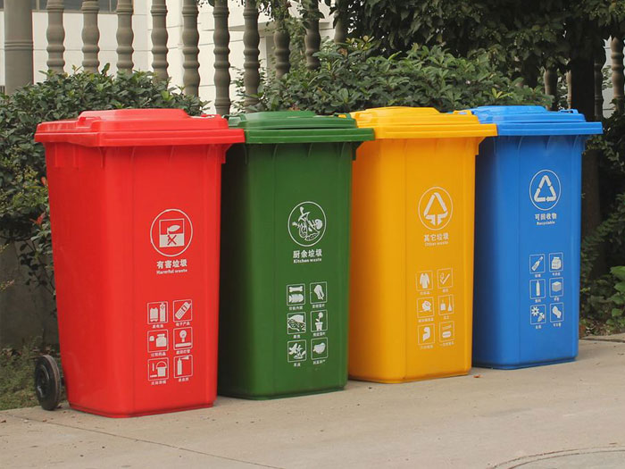 垃圾桶分為可回收垃圾、不可回收垃圾、危險垃圾和其他垃圾四類。可回收利用的廢物,是指適合回收利用和資源化利用的廢物,包括紙張、塑料、玻璃、織物、瓶瓶罐罐罐等,收集在藍色垃圾容器中;危險廢物,是指含有危險物質,需要特殊安全處理的廢物,包括電池,燈具、日用化學品,采用紅色垃圾桶收集;其他廢棄物,是指未分類的廢棄物,采用灰色垃圾桶裝置收集。