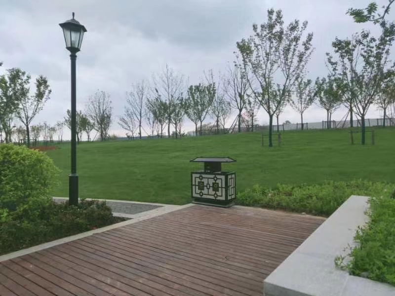 下面展示這款中國風仿古垃圾桶果皮箱不同角度戶外擺放圖: