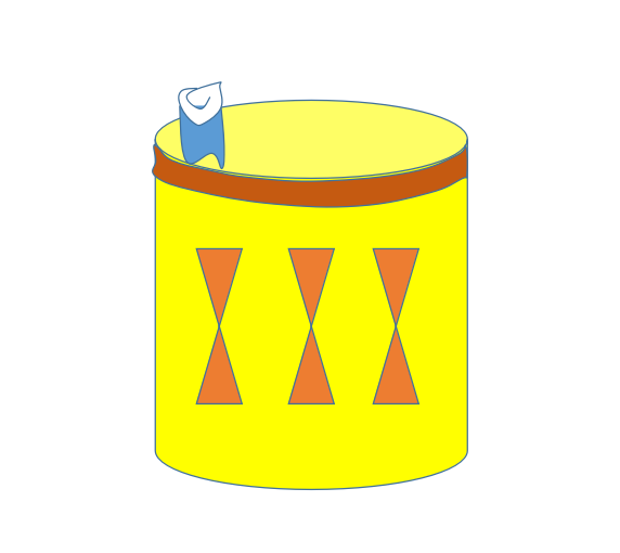 2、在垃圾桶上端的開口處畫出裝飾的紋路,涂上自己喜歡的顏色。
