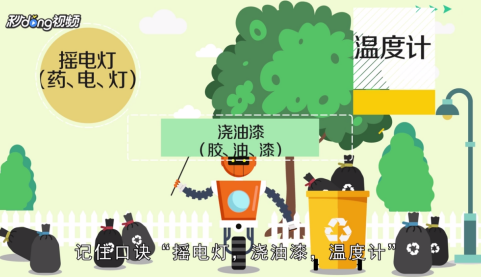 2.其實日常生活中的有害垃圾并不多,記住口訣“搖電燈、澆油漆、溫度計”。