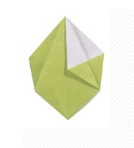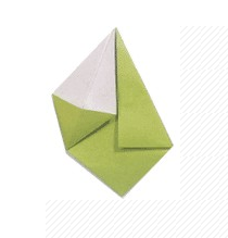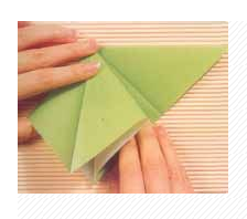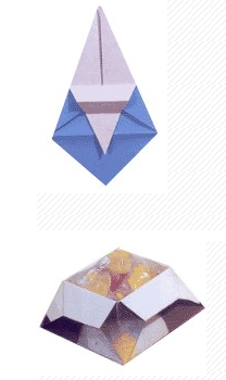 9、將頂端的4個角向下折,若加以內折,可變化出不同的盒型。最后再攤底部,整理了盒型即可完成。