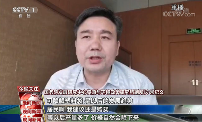國務院發展研究中心資源與環境政策研究所副所長 常紀文:可降解塑料袋是以后的發展趨勢,我建議還是購買。以后產量多了,價格自然會降下來。可降解塑料袋不是說在任何條件下都是可以降解的,它的降解是有特定的條件。那么現在有一個管理上的難處,就是可降解塑料袋和我們一般使用的塑料袋,如果混在一起,都進了垃圾焚燒發電廠了,那么可降解塑料袋要發揮作用是很難的。
